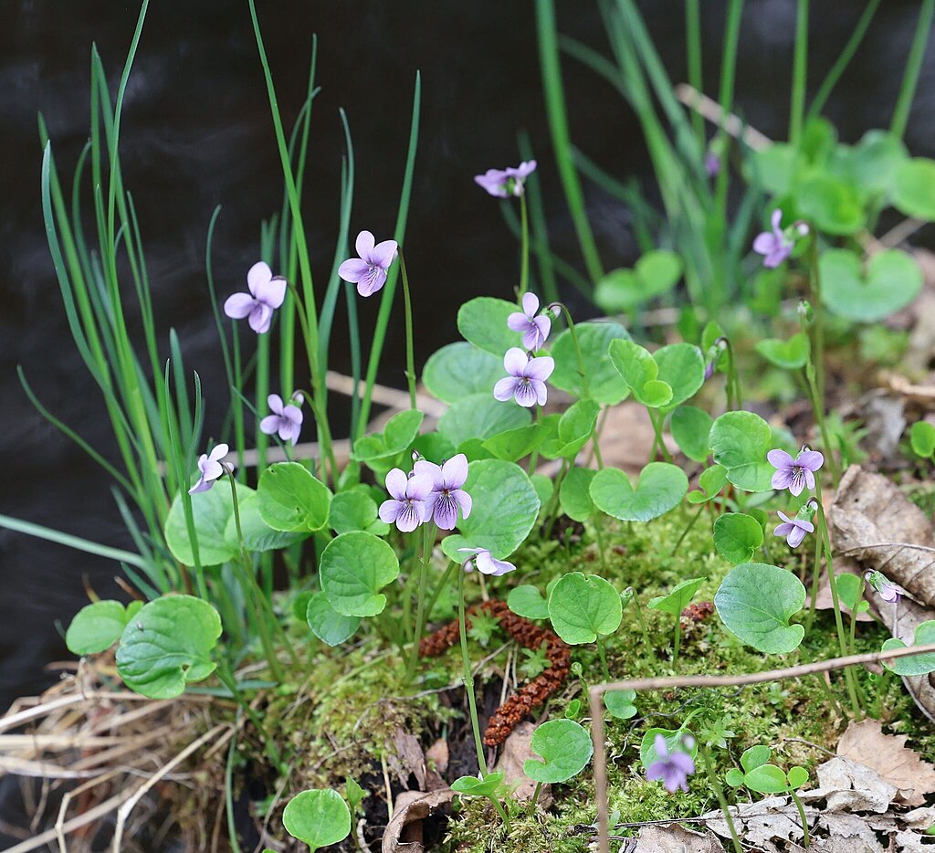 Marsh violet is a creeping perennial herb found in wetlands, bogs, streambanks, and moist meadows across northern and montane regions of North America. It forms low mats of rounded to heart-shaped leaves on slender stolons and produces delicate pale lilac to white flowers, often marked with purple veins, from spring into early summer. Adapted to consistently wet, cool soils, it plays a role in stabilizing saturated ground and supporting pollinator communities, particularly native bees. Ecologically, marsh violet is an important component of wetland plant diversity, thriving in habitats where few other violets can persist.