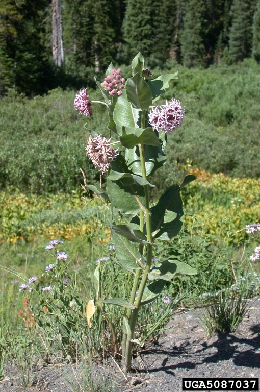 Showy milkweed is a robust perennial native to open fields, roadsides, and riparian areas across western North America. It typically grows 2–5 feet tall, with broad, velvety leaves and large showy clusters of fragrant creamy pink to purplish star-shaped flowers that bloom in late spring through summer. The plant produces elongated seed pods that split open to release silky-haired seeds carried by the wind. Ecologically, showy milkweed is a critical larval host plant for declining populations of monarch butterflies and an abundant nectar source for bees, butterflies, and hummingbirds. Its resilience and ecological importance make it a keystone species in pollinator conservation and habitat restoration efforts.