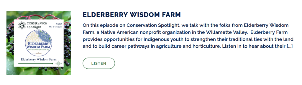 The Conservation Spotlight is a radio segment shining light on partnerships and programs for natural resources that airs on the third Wednesday of every month at 8 am as part of the weekly Willamette Wake Up radio program on KMUZ 100.7 and 88.5 FM. Marion SWCD shares the Spotlight with Polk SWCD .
